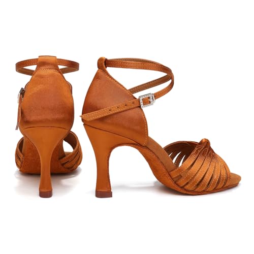 Women's Latin Dance Shoes Satin Open Toe Professional Practice Ballroom Salsa Dancing Shoes 9cm Heel