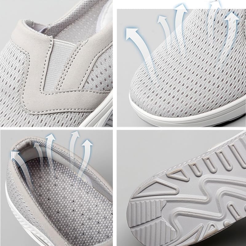 Women's Platform Orthopedic Air Cushion Walking Shoes Mesh Breathable Diabetic Nurse Work Sneakers Slip-ons Light Wedge Ladies Toning Rocker Shoe