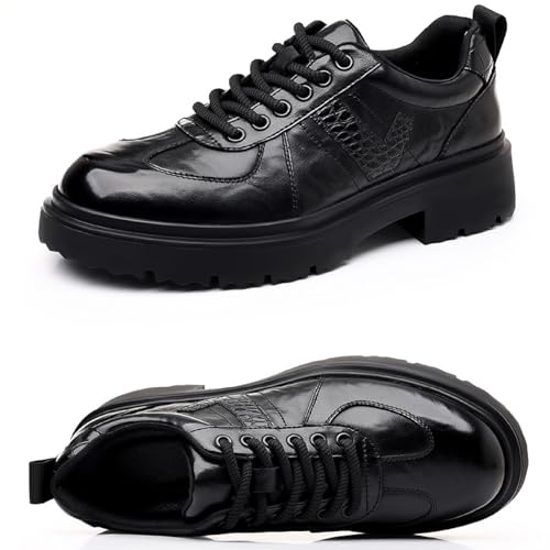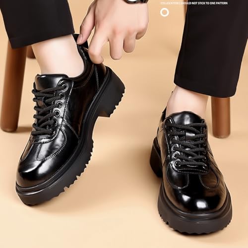 Men's Leather Platform Oxfords Comfort Handmade Round Toe Slip On Non-Slip Lug Sole Lace-Up Formal Derby Shoes Casual Business Work Office Wedding Tuxedo