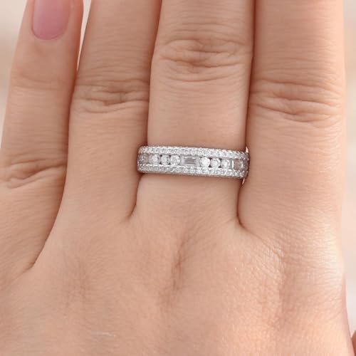 Newshe Jewellery Moissanite Rings for Women 925 Sterling Silver Wedding Bands Pave Emerald Eternity Band Ring Size 5-13