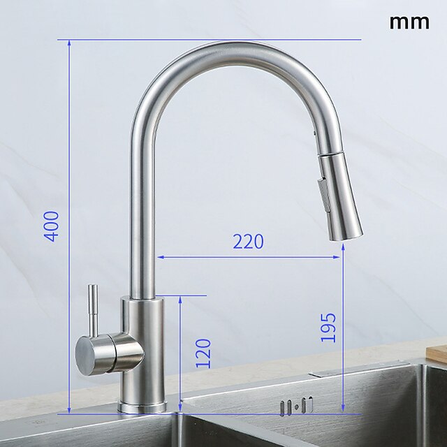 This Kitchen Sink Mixer Faucet with Pull-out Spray Stainless Steel, 360 Rotating Single Handle Pull Down Kitchen Vessel Taps Deck Mounted combines elegant design with practical functionality. Every detail has been carefully considered to ensure you get the supreme possible experience. The superior construction means this product will serve you well for years to come.